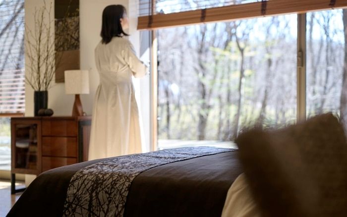 リゾートホテルのような設えのベッドルーム実例