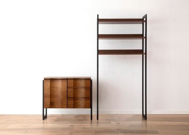 穏やかに佇む木々のように、優しさと力強さを併せ持った「ハーモシリーズ」。自然のままの風合いを活かした無垢材の質感と、クールな印象のアイアンフレームを掛け合わせたコントラストの強いデザインが特長です。a.flatの収納家具シリーズの中で唯一ハイタイプの収納があり、存在感のあるインテリアを楽しめます。