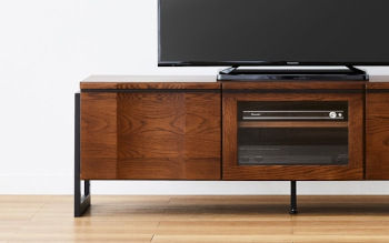 木々の生命力を感じる無垢材と落ち着きのあるアイアン素材の魅力が調和した「ハーモ・テレビボード(GB)」。オーク無垢のやさしい曲面や素材感が見る人を魅了します。また、ガラス扉のオープンな雰囲気もおしゃれ。