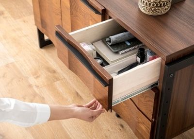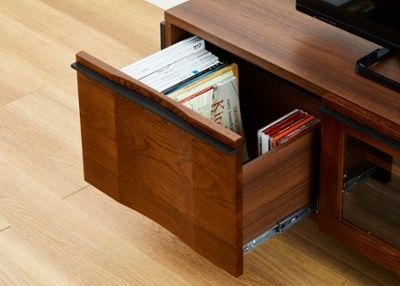 引出し内はCDやDVDはもちろん、本やリビング周りの小物などを整理するのにも便利です。また、耐久性の高いボール・スライドレールを採用。開閉がスムーズで安定性があるため、安心して使えます。