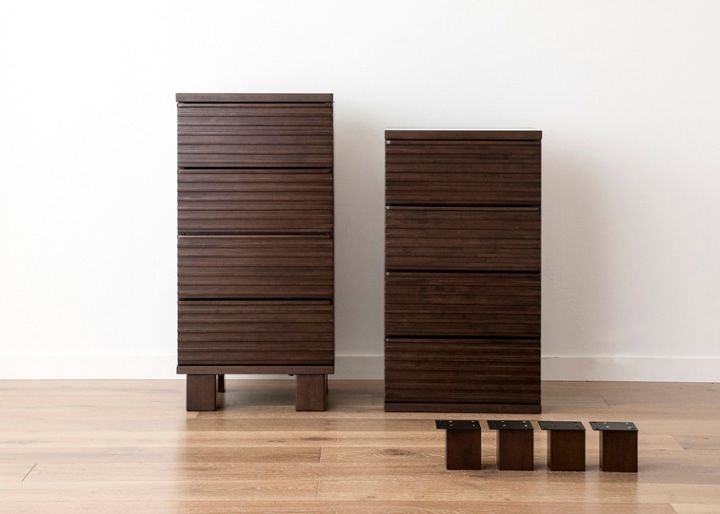 ルーバー・キャビネットv02は、高さ100mmの脚有りと無しを購入時に選ぶことができます。同じルーバーデザインでも脚の有無で印象が大きく異なるため、理想の雰囲気に合わせて選びましょう。