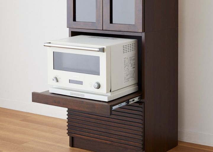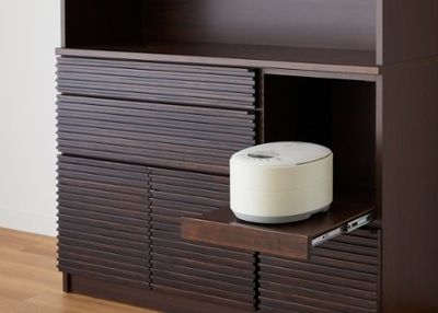 炊飯器やポットなどのキッチン家電を収納できます。スライド棚を引き出しておけるため、熱や蒸気などが出る家電も使いやすいスペースです。