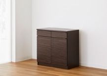 美しい陰影を纏ったルーバーデザインとシンプルなスクエアフォルムが、ホテルライクな空間づくりを叶える「ルーバー・キャビネットv02」。暮らしに合わせて選べる豊富なサイズと扉タイプも魅力です。