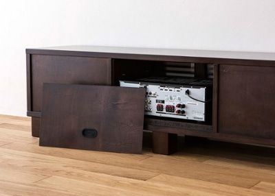 中央のガラス扉は片手で簡単に開けられる、フラップダウン式を採用。付属の着脱式棚板は7段階の高さ調整が可能でAV機器を2台収納できます。