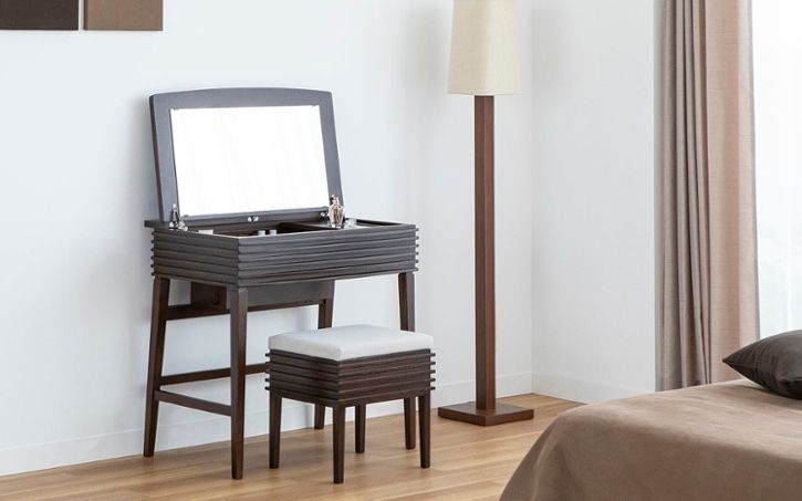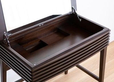 天板は開閉式なので、来客時などは閉めるだけで部屋を整った状態にできます。寝室に置く場合、睡眠時に鏡が見えるのが気になるという方も安心です。また、天板を閉じるとデスクとしても活用可能に。