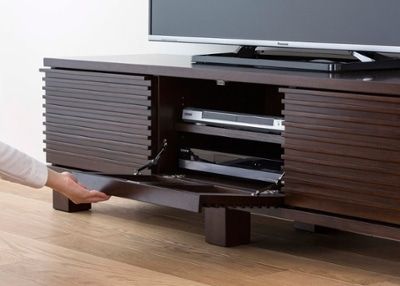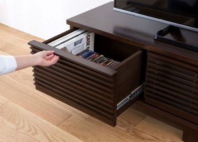 テレビボードの両側は引出収納。CDやDVDはもちろん、本やリビング周りの小物などを整理するのにも便利な深めの設計になっています。