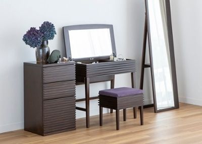 繰り返す波から着想した美しい水平デザインと、見た目以上の大容量収納や高い機能性を兼ね備えた「ルーバー・ドレッサー」。デスクとしても兼用でき、一台あると整うだけでなく暮らしの幅をも広げてくれます。